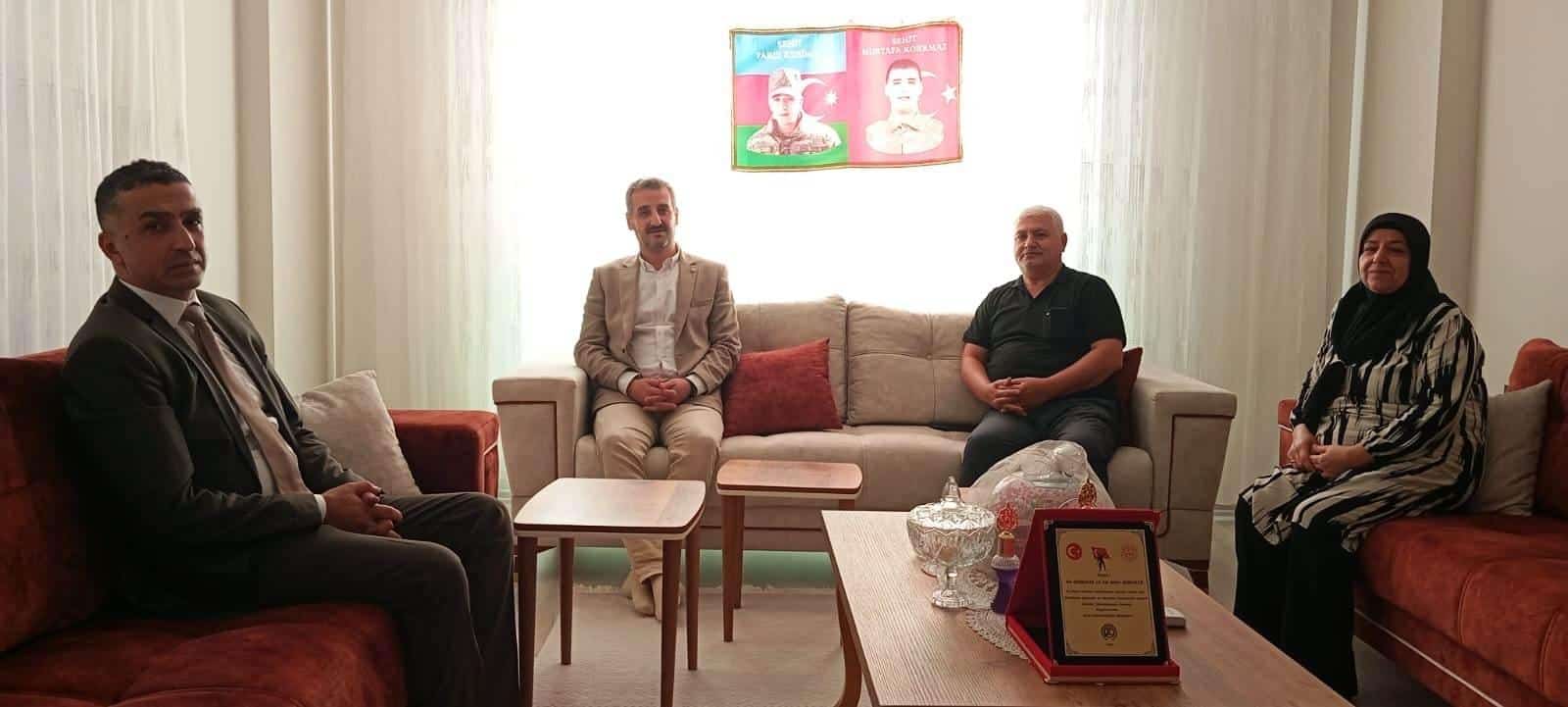 Toroslar İlçe Milli Eğitim Müdürümüz Kaan Aydemir, İlçe Milli Eğitim Şube Müdürümüz Rıfat Pürmüslü ile birlikte kahramanlıkla görevini sürdürürken şehadet mertebesine ulaşan Mustafa Korkmaz'ın kıymetli ailesini ziyaret etti.