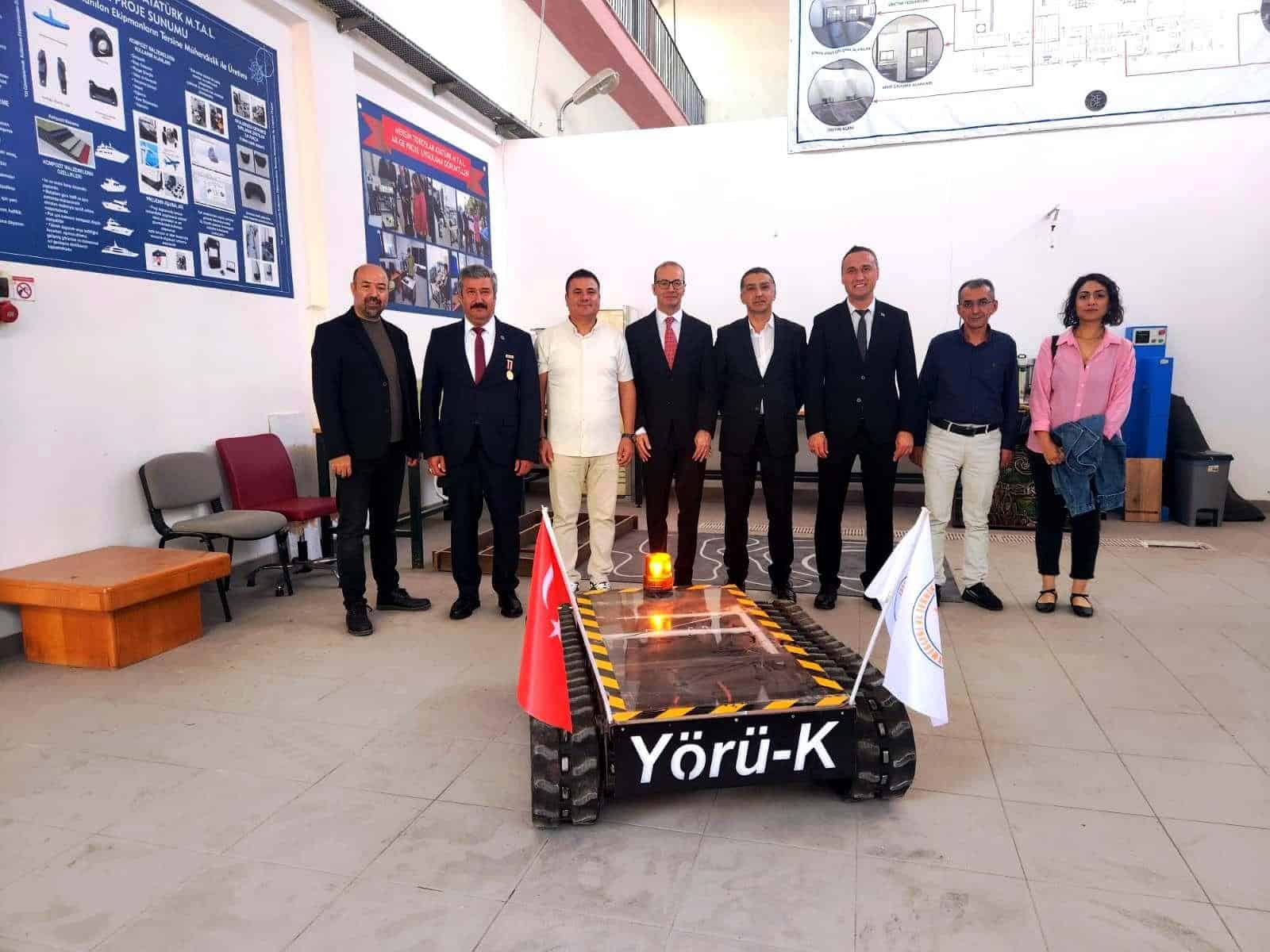 Program sonunda misafirlerimiz, okulun savunma sanayine yönelik alanlarını ziyaret ederek öğrencilerimizin geliştirdiği YÖRÜ-K otonom kara aracı hakkında bilgi aldılar.